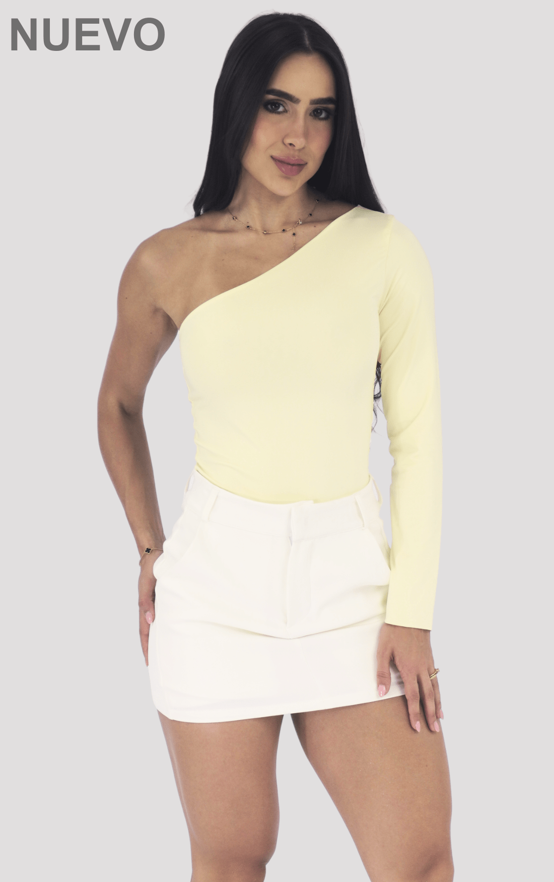 - Diseño: Escote asimétrico de un hombro con manga larga.