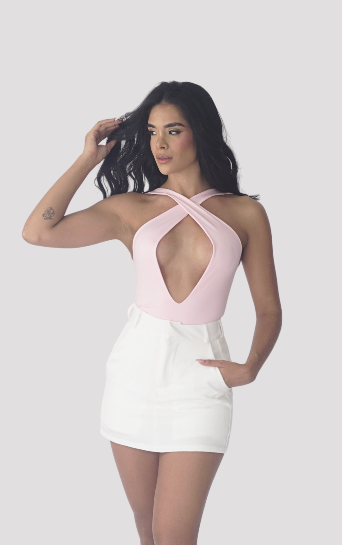 Nuestro body Arena es una declaración de seguridad y feminidad. Su diseño con escote profundo en forma de lágrima y tiras cruzadas al frente estiliza el busto con sensualidad, mientras que su espalda completamente descubierta añade un toque irresistible. Fabricado en lycra Pat Primo de calidad premium, se adapta al cuerpo como una segunda piel, brindando comodidad, ajuste perfecto y soporte en cada movimiento.