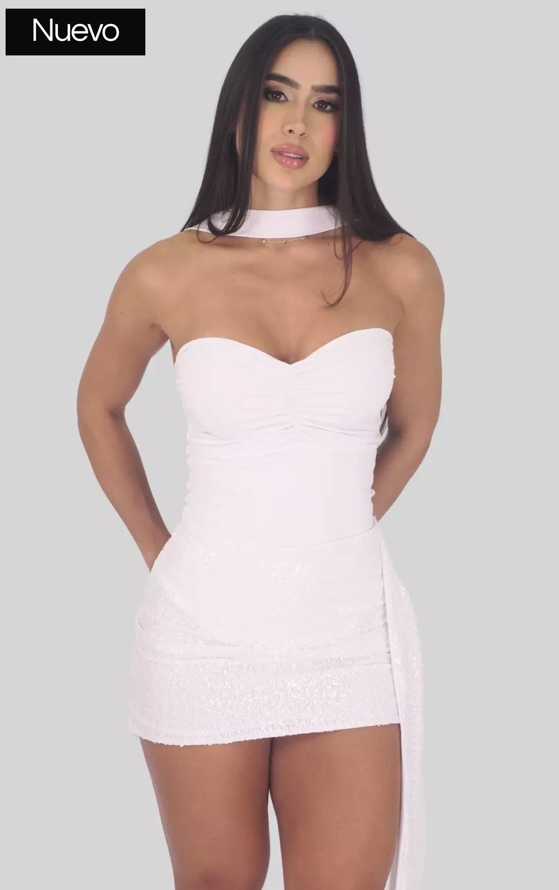 - Temporada festiva: Su diseño strapless con banda al cuello lo convierte en una pieza ideal para celebraciones o cenas especiales.