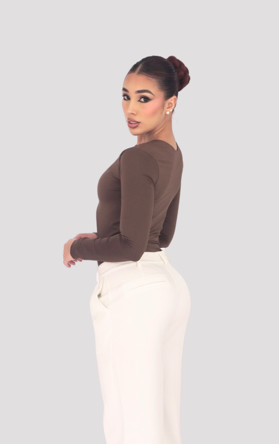 Ideal para eventos, cenas o salidas con un estilo protagonista, el body Olivia puede combinarse con pantalones de corte sastre para un look elegante y moderno, o con jeans de tiro alto para una propuesta casual chic. Perfecto con recogidos pulcros o coletas altas que resalten el diseño del escote, y accesorios minimalistas que no compitan con su diseño impactante.