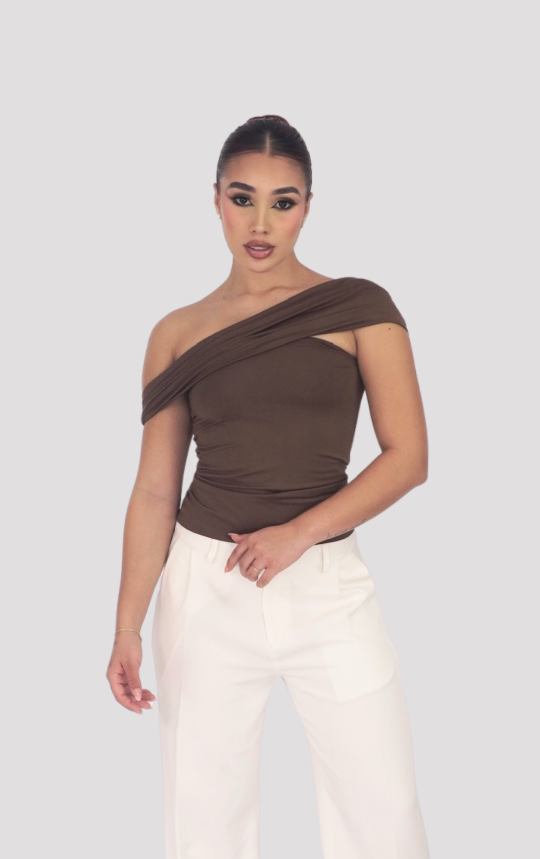 El drapeado sutil en el busto y la pretina fruncida a los costados ayudan a estilizar la silueta sin perder la comodidad. Es una prenda favorecedora que abraza el cuerpo sin restringir el movimiento, ideal para elevar cualquier outfit básico con un toque sofisticado y moderno.