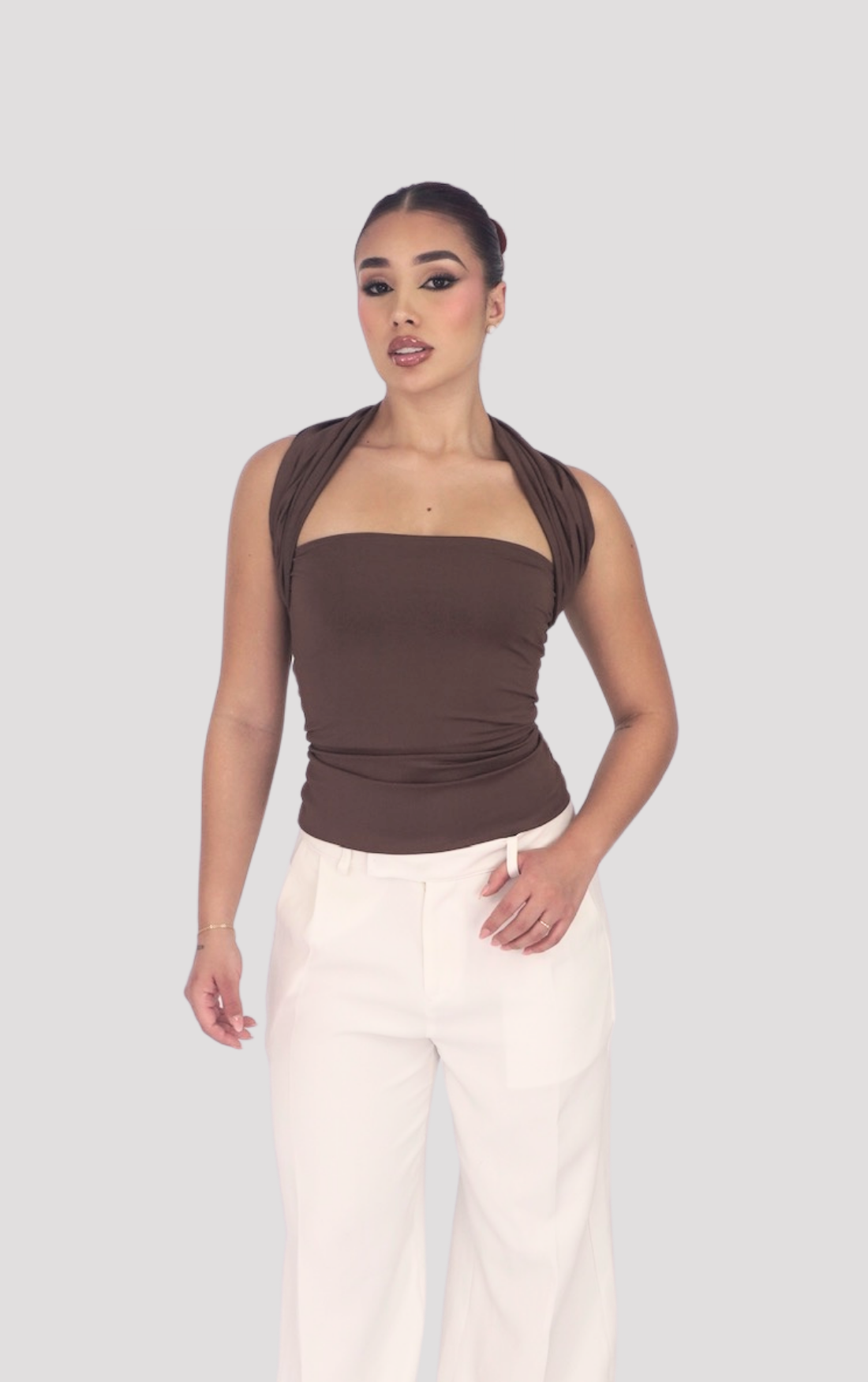 Diseñado para las mujeres que buscan versatilidad y estilo en una sola prenda, el top Renata es una pieza clave dentro de cualquier armario gracias a su diseño multifuncional. Su estructura envolvente permite usarlo de múltiples formas: estilo bandeja, cruzado, halter, asimétrico o tipo strapless, brindando libertad para adaptar el look según la ocasión o el estado de ánimo.