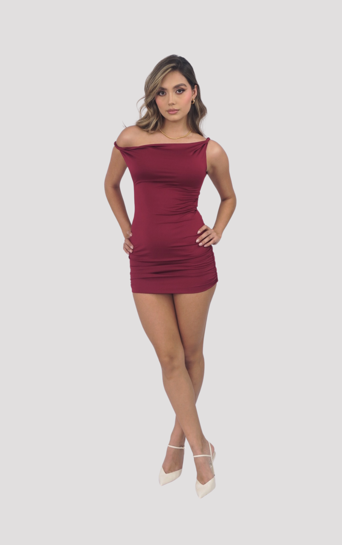 Elegancia y sensualidad en un solo diseño. Nuestro vestido JULIETTA destaca por su escote asimétrico, que resalta los hombros con un aire sofisticado y moderno. Su efecto drapeado en los costados estiliza la silueta, mientras que su ajuste ceñido realza cada curva. Perfecto para una cita especial, una noche de fiesta o cualquier ocasión donde quieras brillar.
